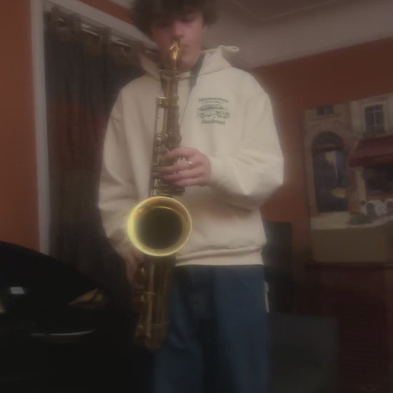 Honey dark gold lacquer, sound projection grooves. Fits mark six and all vintage Selmer tenor Saxophones.